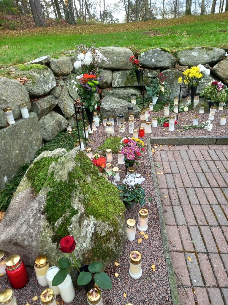 Igår var det alla helgona och det blev besök på två kyrkogårdar. Första stoppet var kviberg, och mormor, morfar och mosters grav och tände ett ljus.