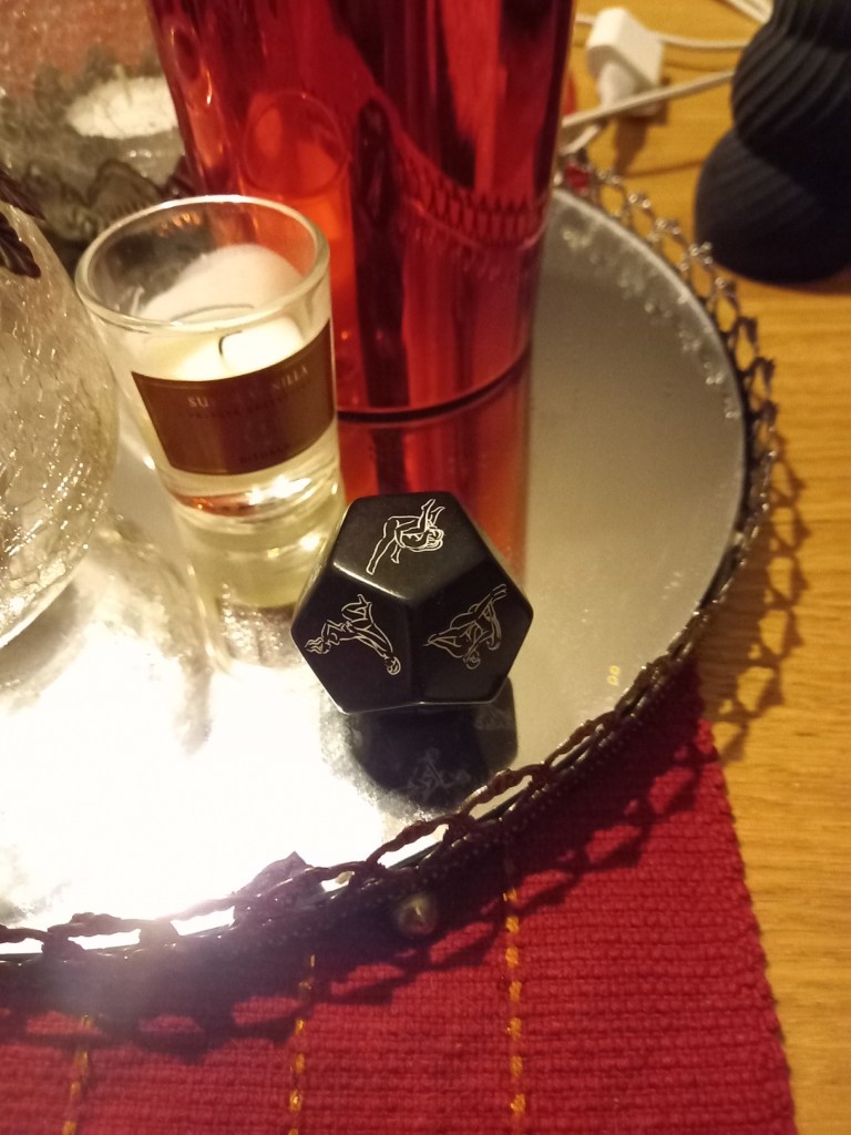 Lite mer åt det skämtsamma hållet. Vi hittade en tärning som visar vilken ställning som ska användas. Kanske blir lite variation. Ja lite får man allt skoja till det, eller vad säger ni?