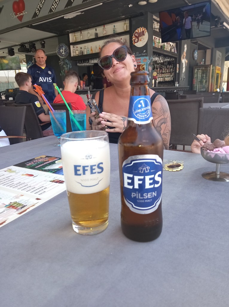 Bilden är tagen i somras då vi var i Turkiet och då man är där är en efes ett måste. Dricker väldigt lite öl, och dricker sällan det ljusa, men en varm sommardag så är det ett måste. Efes är så galet god där nere, men smakar inget vidare då man är hemma, Visst är det konstigt?