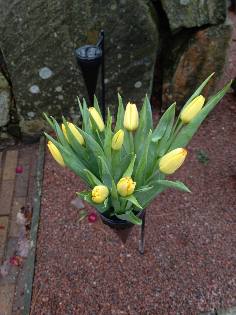 Ja det får bli två. Igår skulle mamma fyllt 83 om hon fått leva. Hade tänkt på det i flera veckor, ändå var det totalt borta igår. Idag åkte jag till minneslunden och lämnade lite blommor. Så tomt där uppe idag, men lite gula tulpaner piggade allt upp tycker jag. För många som lämnat oss nu.
