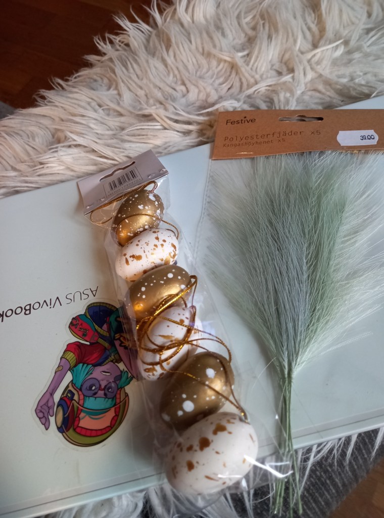 Det är ju påsk snart och under lång tid har jag inte pyntat något alls,, men visst är det kul med lite vårkänsla hemma? Vill ju fjärdar, men absolut inte äkta. Väldigt svårt att hitta, men tillslut så fann jag några. Tycker dom är riktigt fina också. Till det lite ägg så får vi lite påskkänsla här hemma. Tror det kan bli fint här hemma