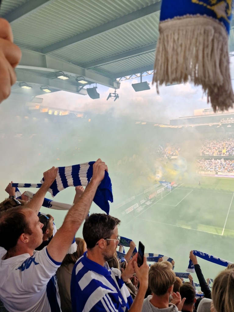 Så bra stämning och vilket tryck på läktarna. Det var sång från att vi kom in till långt efter matchen var slut. Fansen kan man ju inte klaga på. Älskar sitt lag både i nöd och lust. Fullsatt arena och till och med Häcken hade supportrar med. Det har varit så tråkigt att ett så bra lag inte har så många supportrar.