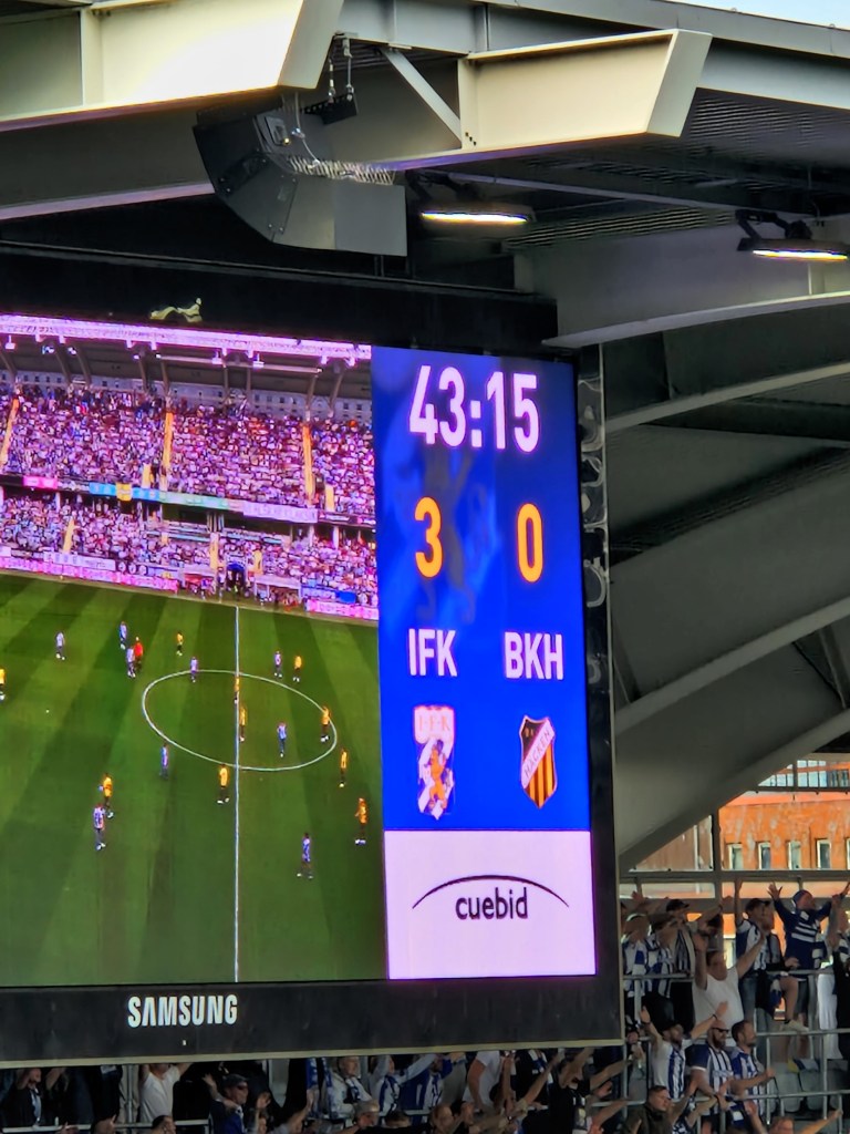 Någon timme senare så var det dags för herrarna att spela sin match mot Häcken. Häcken ett topplag, och vi ett bottenlag Väldigt dubbla känslor där Även om det är konkurrenter så känns det gott i hjärtat då Häcken gör bra ifrån sig och gläds åt deras framgång. Dom får gärna vinna mot alla… förutom just den här matchen.