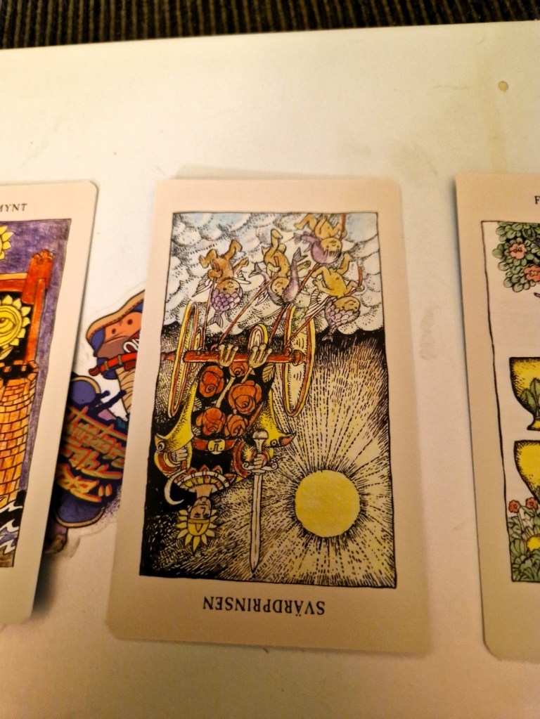 Sista kortet blev ett kort ur bägarsviten, vattensviten är vi ni i och det står även för känslor, det omedvetna småfolket och växtriket.