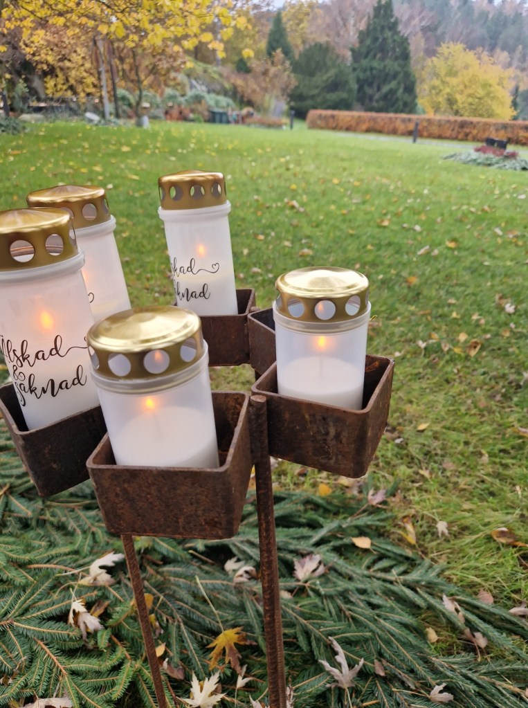 Alla helgona igår och dagen då vi ska tänka lite extra på de som inte är med oss här på jorden. Tror ändå våra anhöriga är med oss i en annan dimension. Första stoppet kvibergs kyrkogård. Tände ljus för mamma och pappa, medans min man tände ljus för hans mamma. Nu är inte hennes spriden där, utan ute till havs. Däremot är det så bra med minneslund då man kan tända ett ljus även om någon inte ligger just där.