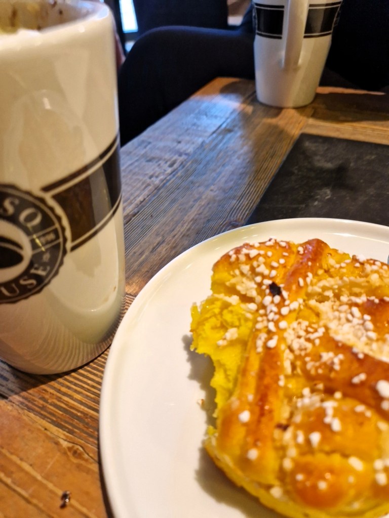 Stannade till en stund för att ta en fika, och för att värma oss en stund. Det är ju galet kallt ute nu.