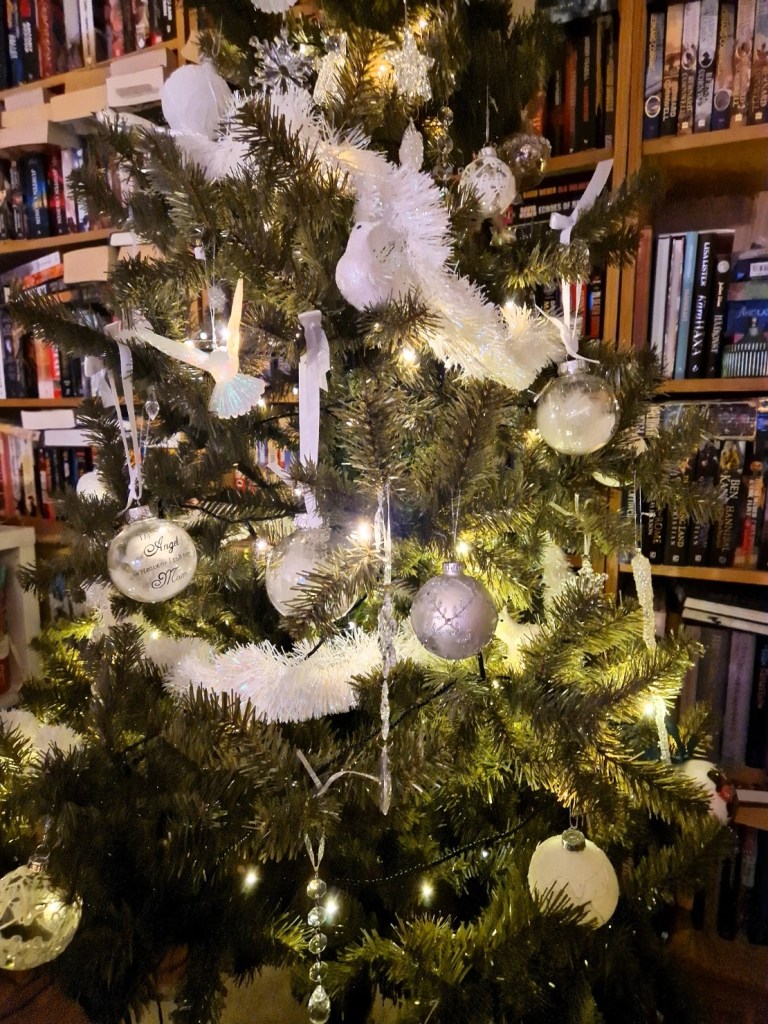 Varje år så har vi olika teman på vår gran. Först tänkte vi att den ska bli vit och blå, men då vi fick upp våra vita kulor så kände vi att vi var nöjd med det. Tyckte den blev vacker.
