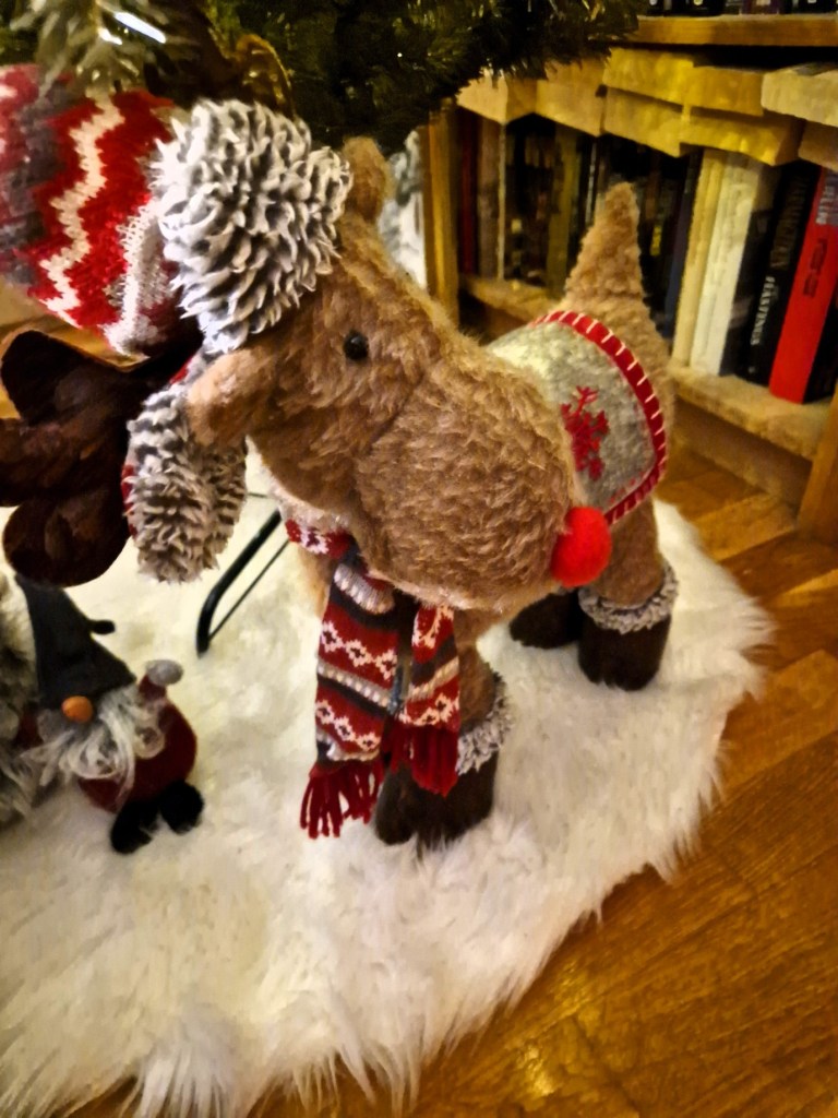 Dom fick komma fram och står under granen. Till det vår gosiga julgransmatta. Tycker det blir extra mysigt att ha den istället för en vanlig. Som det är nu kan vi inte lägga några julklappar under granen då vår katt gärna tuggar på snörena. Kanske inte så bra så det undviker vi.