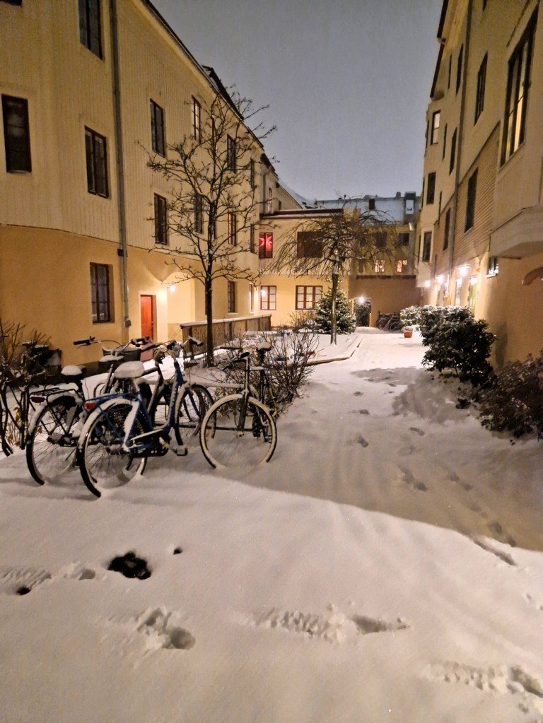 Visst är det vackert ute nu och allt blir så mycket ljusare ute då snön ligger. Häromdagen så kom det väldigt mycket och visst är det lite med dubbla känslor. Vackert, och ljust, men ska man ut på vägarna är det inte lika roligt. Tog en bra stund att sopa ren bilen, och vägarna var inte så roliga att köra på. Snömoddigt, och bilen slirade ordentligt.
