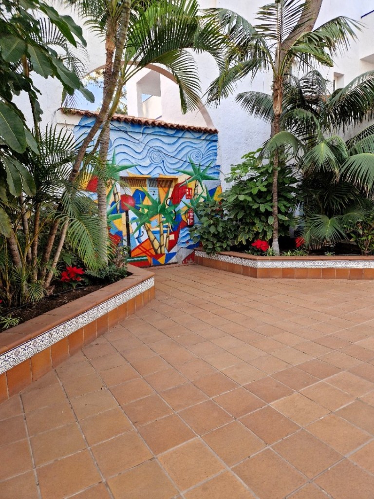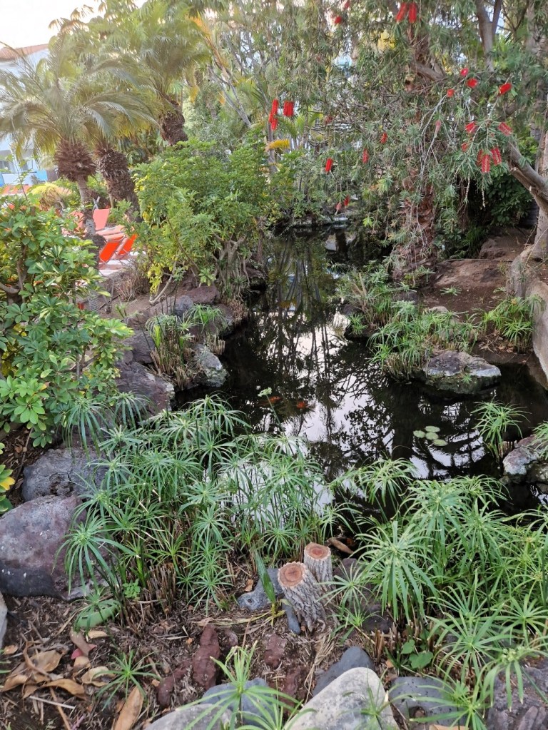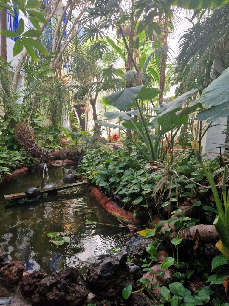 Tycker det påminner en hel del av hotellen jag bott på då jag varit i Afrika. Har besökt både Egypten och Marocko. Flera byggnader, mycket grönska, och en hel del trappor. Känns som man är inomhus hela tiden fast det inte är så. Helt magiskt tycker jag. Sköldpaddorna dom har vid en av alla små dammar är så söta. Ser ni den?