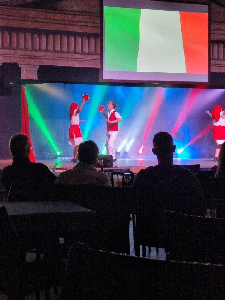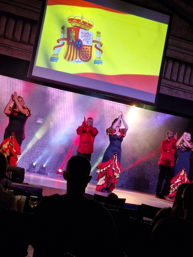 Kvällen avslutades med underhållarnas bingo och därefter en ny show. Travel around the world. Det sistnämnda. De tog oss med en rundresa med först bilder från flera länder och för oss blev det en nostalgitripp. ”Där har vi varit” ” där har vi gått” Sen någon dans därifrån. Vissa riktigt bra, andra med en stor portion humor. Speciellt då dom tog med oss till Moulin rouge.