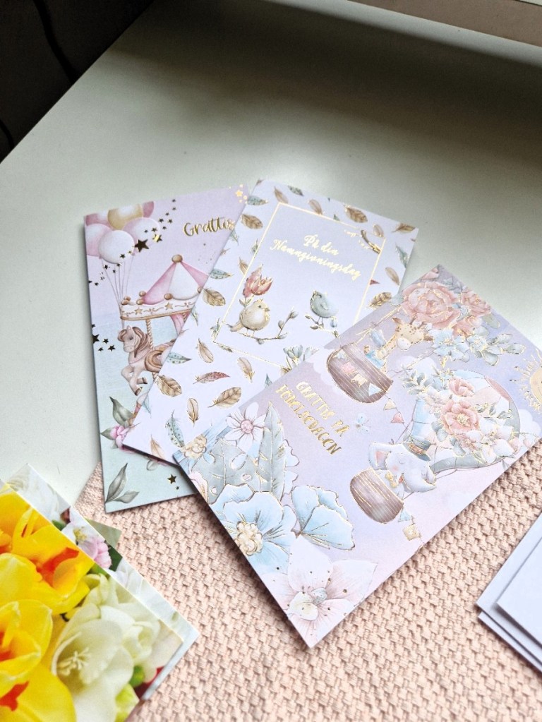 har jag börjat handla där. Det är ju svindyrt att köpa i vanliga affärer och de dubbelvikta betalar man 5:90 styck för. Ja nu läste rätt. Strax under 6 kronor per kort. Dom är riktigt fina tycker jag, och passade på att handla inför födelsedagar som kommer.