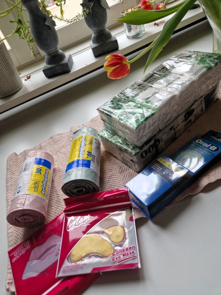 Återigen en bild med bra att ha saker. Sådant som är så tråkigt att handla, men som är ett måste att ha hemma, Tur det är billigt där och att man inte behöver det allt för ofta.