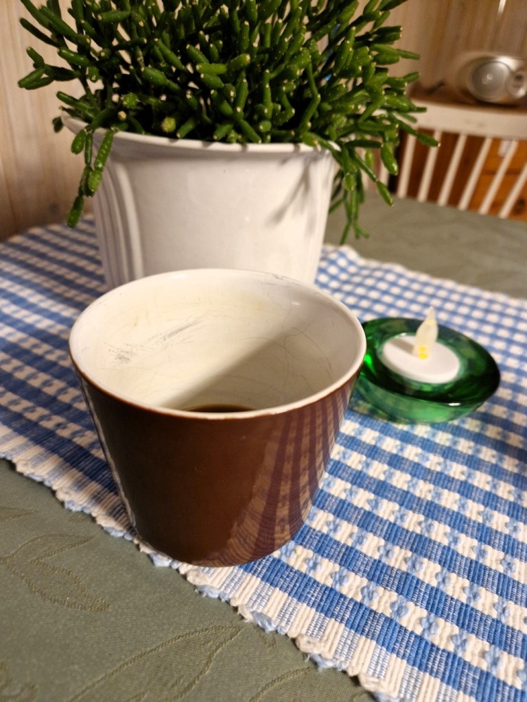Här sitter jag med mitt morgonkaffe och snart startar morgonens sysslor. Har ju jobbat hela helgen och går hem om ett par timmar, men först ska alla väckas. Planen idag var att fika med en kompis idag, men hon blev sjuk.