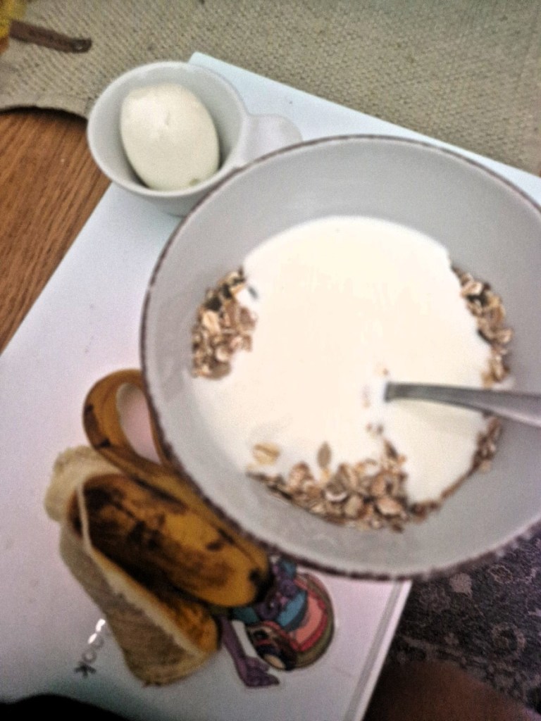 Vaknade ju tidigt och kikade in hos er samtidigt som jag åt min frukost. Som vanligt, ägg, banan, kaffe yoghurt och musli. Bästa starten på dagen för mig.