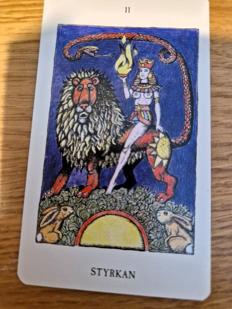 1. Kul att läsa om lejonet i tarokort. Har aldrig hållit på med sådant själv men har fått uppfattningen att det är något du tycker är roligt. Jag själv har ett speciellt band till sådant med lejonet då jag har det son stjärntecken.