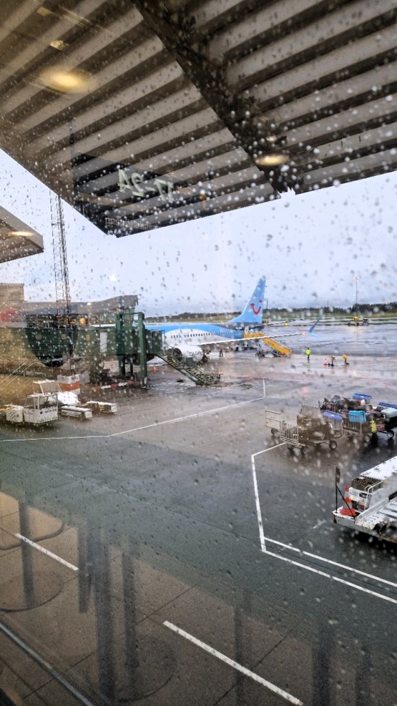 Min man åt frukost på landvetter och jag tog bara en kaffe där. Då vi var klara tog vi en liten runda i butikerna och sen toabesök och sen var det dags att att boarda planet. För en gång skull gjorde dom det tidigt, och där började ”problemen” Vi fick inte vår starttid förrän 25 minuter efter vår ordinarie tid. Den var inte så kul.