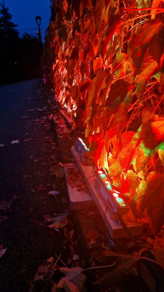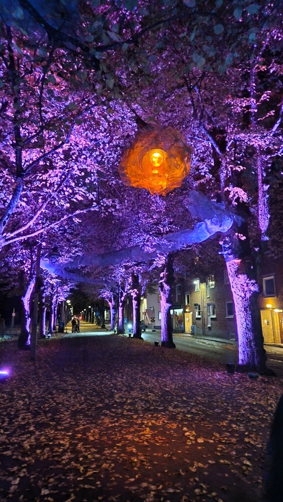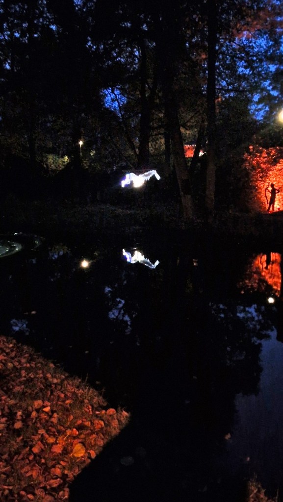 Tyvärr kan jag inte återskapa allt med mobilkameran, men ni får ett hum vad vi såg. Har ni möjlighet, åk hit. Det står kvar fram till 3 november, men ta det då det är mörkt.
