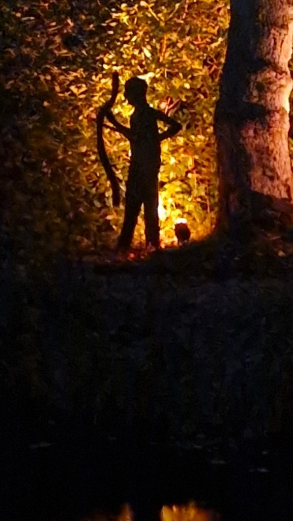 Tyvärr gör inte min kamera det här rättvisa. Här handlade det om andra sidan, i ett blått ljus mellan träden. Ser ni liemannen i båten? Tog ett tag innan jag såg. Var så häftigt att se.