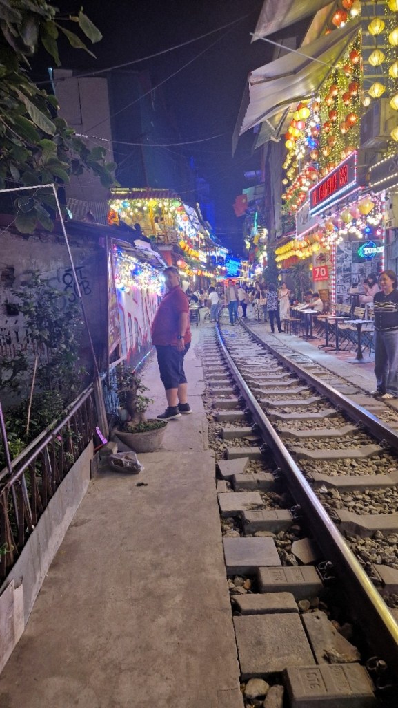 Det började med att fransmännen byggde en järnväg i Hanoi och den gick mellan husen. Lite senare öppnades små barer runt omkring ( har inga årtal tyvärr). Ja ni ser hur nära man faktiskt sitter.