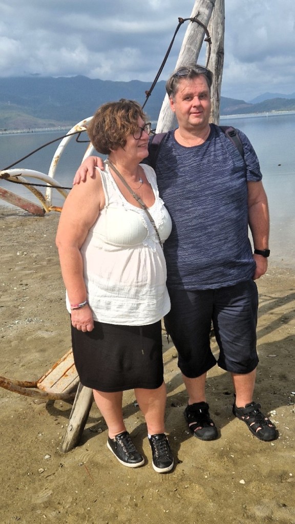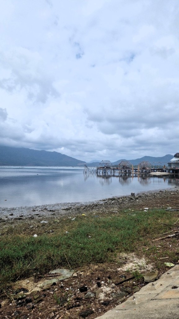 Första stoppet vid vattnet. Vi åkte förbi pärlodlingar och dom sålde de i affärerna vi stannade vid. Köpte mig ett par örhängen för ca 90 kronor. Dom sa att det var äkta, men till det priset. Tveksamt. Oavsett så är priset helt ok. Då vi var inne i förra pärlfabriken så malde dom ner ojämna pärlor, och de här var inte perfekta.
