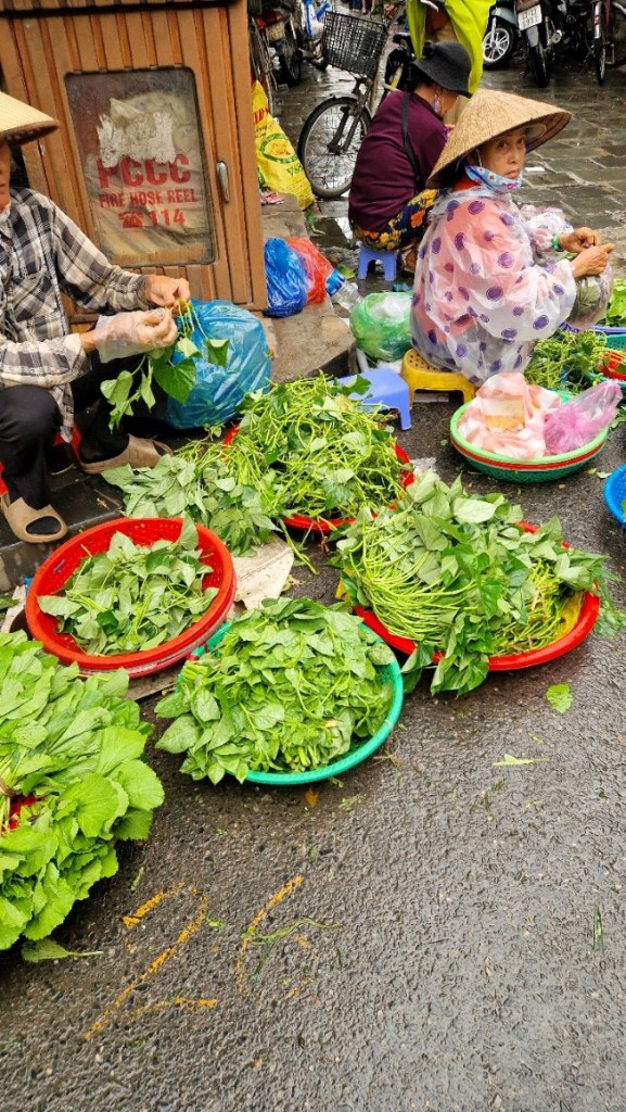 Klockan 8:15 skulle vi samlas för dagens utflykt. Utanför hotellet stod ett par tuktuk för att köra oss till marknaden i centrum. Väl framme vid marknaden mötte tre guider upp oss för att visa oss runt på matmarknaden i stan. Även vietnameserna handlar där. Tänk om svenska hälsovårdsnämnden hade kommit hihi. Det var frukt och grönt, kryddor, kött och fisk i en salig blandning. Här talar vi inte om kyl och rena ytor inte. Samtidigt så är det så häftigt att se tycker jag. Myllret av folk, men väldigt få turister.