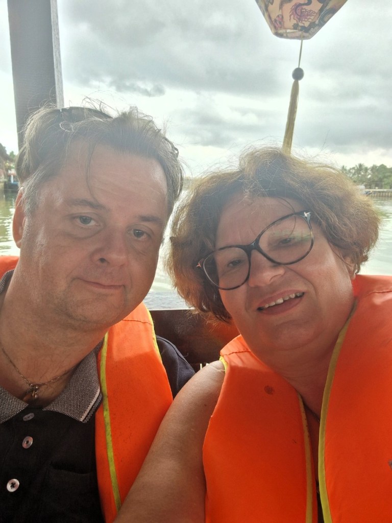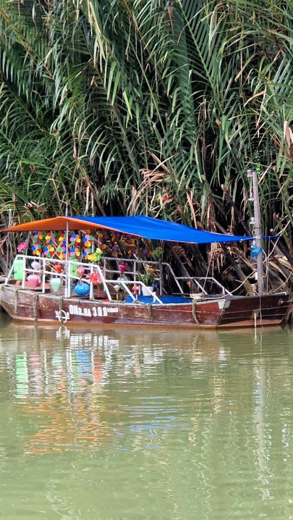 Då vi var klara väntade två båtar på oss som skulle ta oss mot målet. Vi fick en mysig stund på floden och fick se fiskare, i sina små båtar och bebyggelsen utmed vattnet. Dom pratade om att turen skulle ta cirka en halvtimme, och det kanske stämde. Det här var helt klart bättre än den på parfymfloden.
