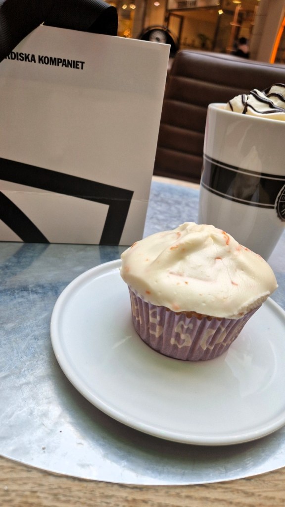 Jag valde att hoppa av i Brunnsparken och gå till Stenpiren. Det är en hållplats. Smet in på NK och handlade lite och tog en fika inne på Arkaden. Det är ett litet shoppingcentrum precis bredvid Nordstan.