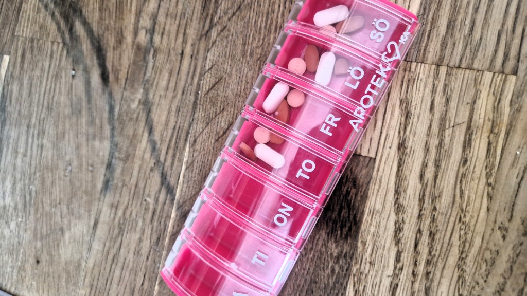 Höll på att glömma mina piller. Målet är väl att bli av med allt. För att det ska lyckas måste jag få till kost, vikt och träningen. Det är ju den största moroten för mig just nu. En sak åt gången och till slut är väl även jag framme där jag ska vara.
