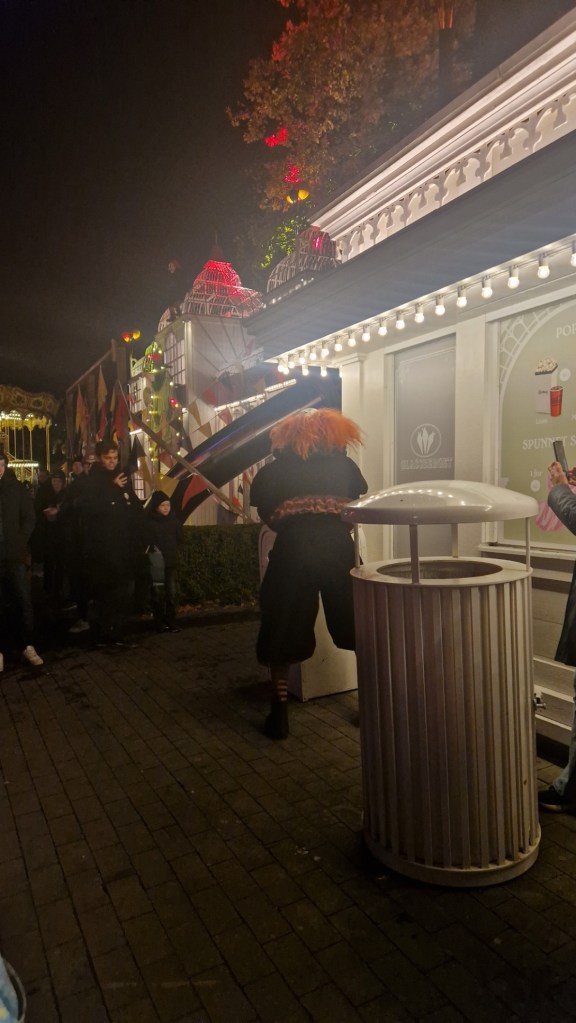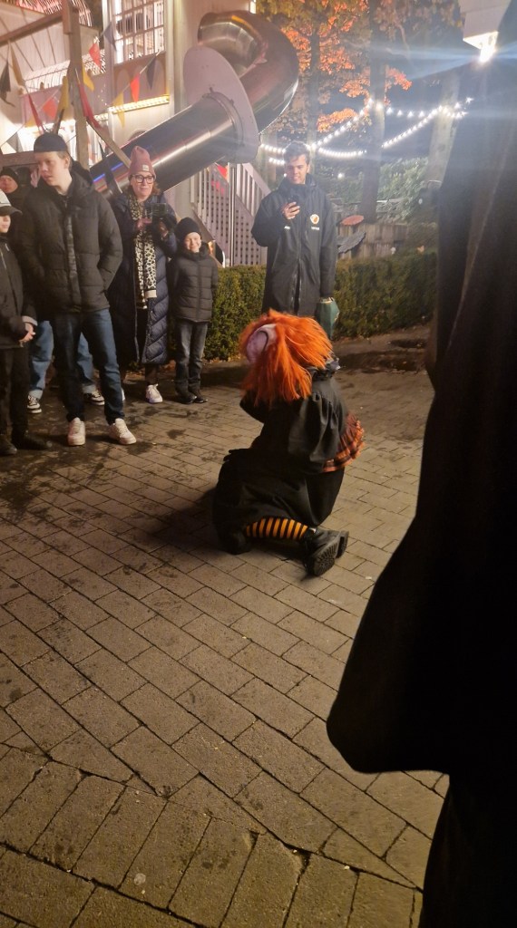 Då mörkret sänkte sig mötte jag upp dotter barnbarn och en kompis till henne på liseberg. Skrev ju sist att vi saknade clownerna. Dom var inte borta, men hade flyttat på sig till Luna Park istället och ett litet annat koncept. Har alltid sagt att dom borde satsa mer där uppe, och i år gjorde dom det. Tyvärr var kompisen lite rädd så vi stod utanför.