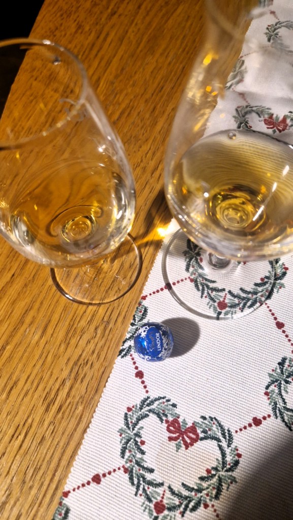 Som alla kvällar som jag inte jobbar natt testar vi whisky. Vid första smaken tyckte jag inte alls om den. Luktade surt och smakade sött. Luktade igen och då kom de knäckiga lukterna fram. Tillsammans med lite choklad blev det helt Ok måste jag säga.
