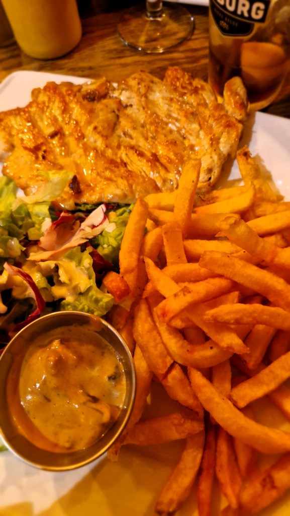 Då vi är ute så uppskattar vi mest ställen där ortsbefolkningen går. Även om det var på en turistgata så hörde vi i princip bara franska. Här var det rörigt, oorganiserat och högljutts. Precis som det ska vara i Frankrike. Enkelt, robust mat smakar bra. Me like.