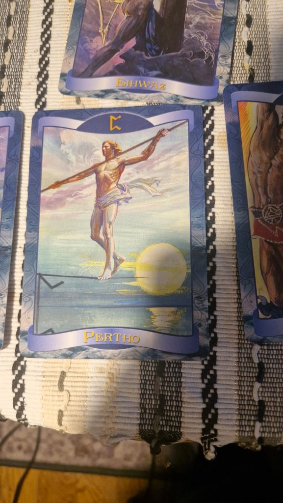 Pertho Hemlighetens runa. Står för hemligheter eller att något dolt kan komma upp. Det pratas även om acceptans och undermedvetna insikter. I läggningar kan det vara att en hemlighet röjs, eller att ödet spelar en viktig roll.