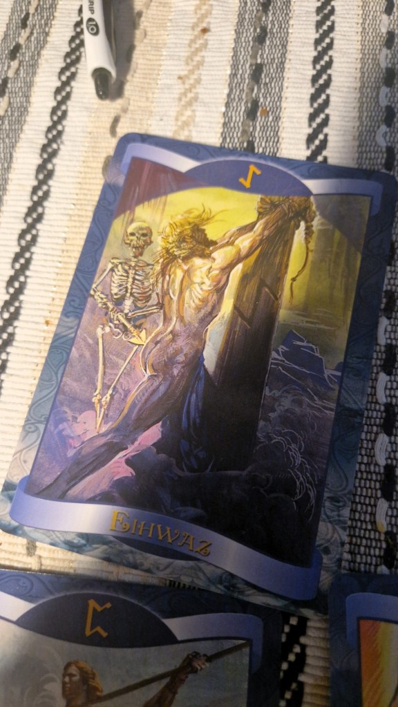Eihwas, en av de kraftfullaste runorna och kopplas till död. återfödelse och uthållighet. Precis som i en tarotlek så står inte döden för att absolut avslut utan mer för att lägga bort något för att få en nystart. Ledord är styrka, skydd, övergång och inre stabilitet. Visst är det just detta vi behöver i en värld som ser ut som den gör?
