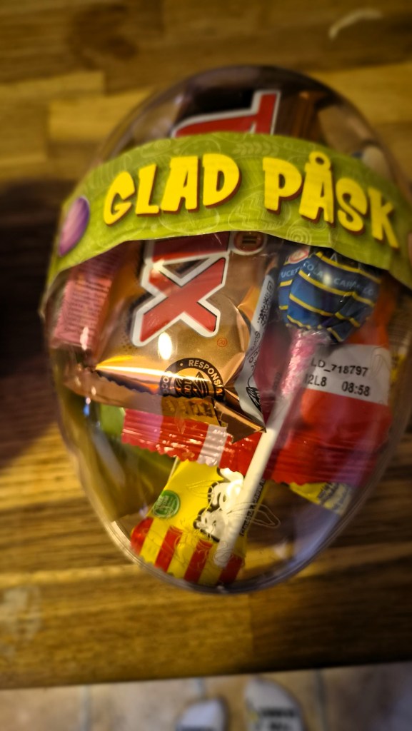 Påsk ja, då ska barnen få varsitt påskägg. Minstingen tycker inte om godis så han fick lite leksaker istället. Gillar att skämma bort de små liven, så är det bara.