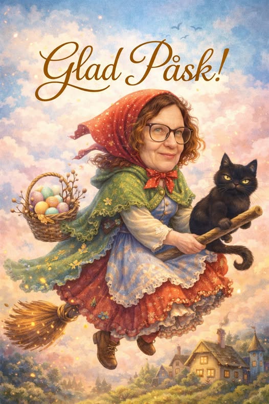 Ja nu åker tant till blåkulla och tänkte bjuda på den bilden också. Gillar att leka med AI då man kan göra så mycket roligt med det.