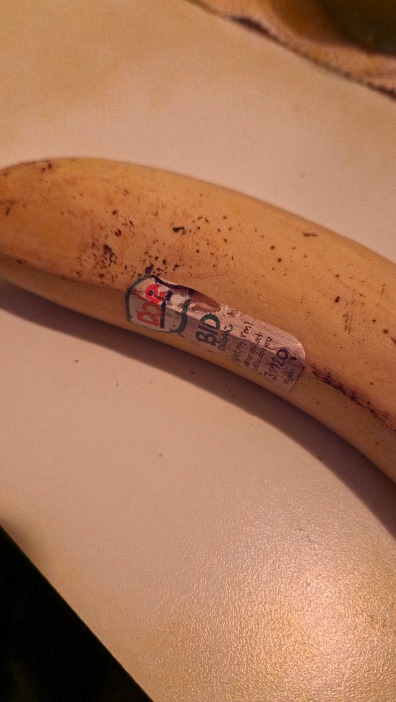 Sist ut. En banan, kanske lite för mogen. Men fortfarande gul.