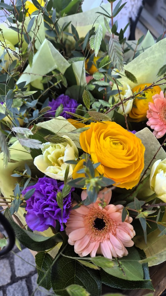Sista bilden. En så vacker bukett jag hittade utanför en butik. Hade jag åkt hem direkt hade jag nog köpt med mig en hem, men så var ju inte fallet den dagen. APT och sen skulle jag köra ett pass på gymmet. Tvivlar på att den skulle hålla så länge.