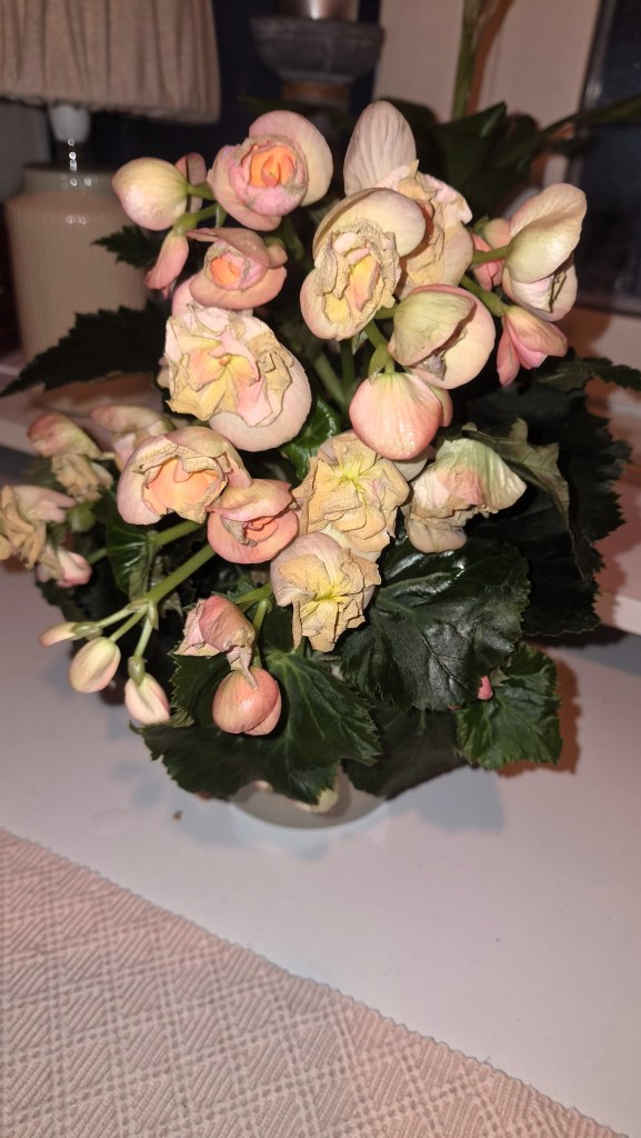Dessa tre bilderna bjuder jag på idag. Först ut en begonia jag köpte istället för snittblommor. Billigare och håller lite längre. Kände att jag ville ha en då jag var i affären sist. Lyser allt upp i köket lite och det är precis det jag behöver.