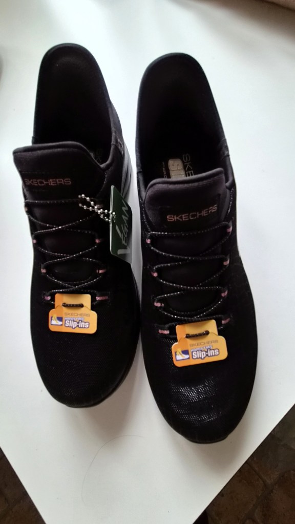 Min man älskar sketcher skor. Jag har aldrig haft några, men även jag köpte i söndags. Tyckte dom var lite fina. Syns inte på bilden, men fästena är rosa och det är lite glittrigt på skorna. Strax under tusenlappen betalade vi och de var bland de dyraste där. Exakt samma hittade jag inte på deras hemsida, men ca fjorton-femton hundra kostar de flesta.