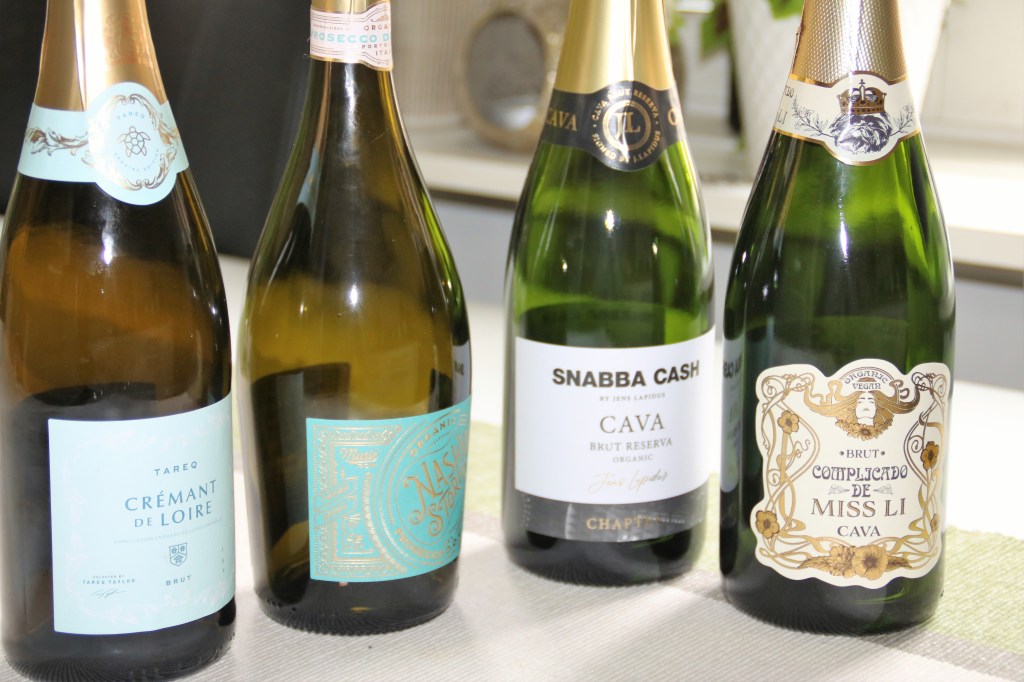 Fick ett tips för någon vecka sen av Kajsa som bloggar på bland kastruller och vinglas. Hon hade ordnat en provning med kändisbubblor. Vilken kul idé tänkte jag och naturligtvis hakade jag på. Våra vänner ( nu blev det min ena dotter, samt min kusin med man som var med) älskar ju bubbel, älskar även provningar, så det kunde inte bli bättre.