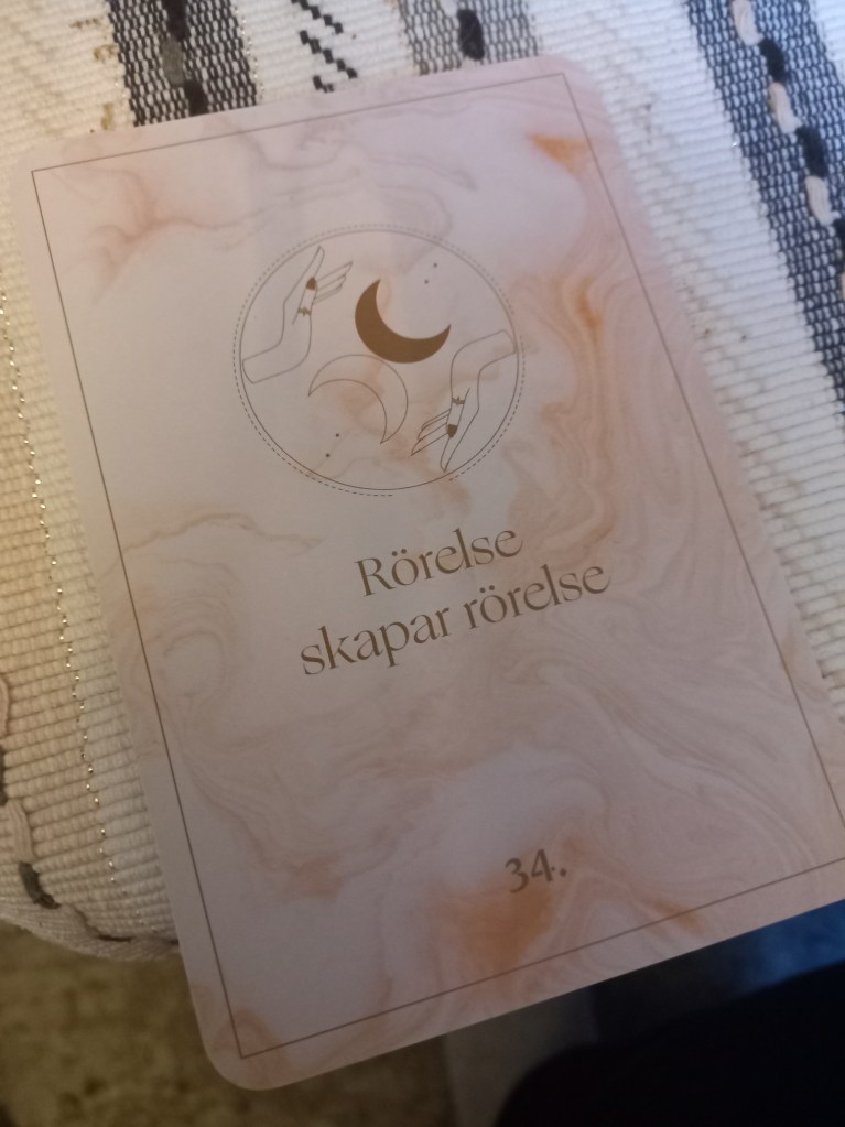 Ännu ett kort som var så träffande. Har inte tränat sen augusti. Är fortfarande bitter för det med pure change. Hade behövt detta så mycket, men orkar verkligen inte. Moment 22. Däremot satt jag just och tittade på pass precis innan jag drog kortet. Eller drog är inte helt rätt. Just detta kortet hoppade ur leken. Mer tydligt än så kan det inte bli eller vad säger ni?