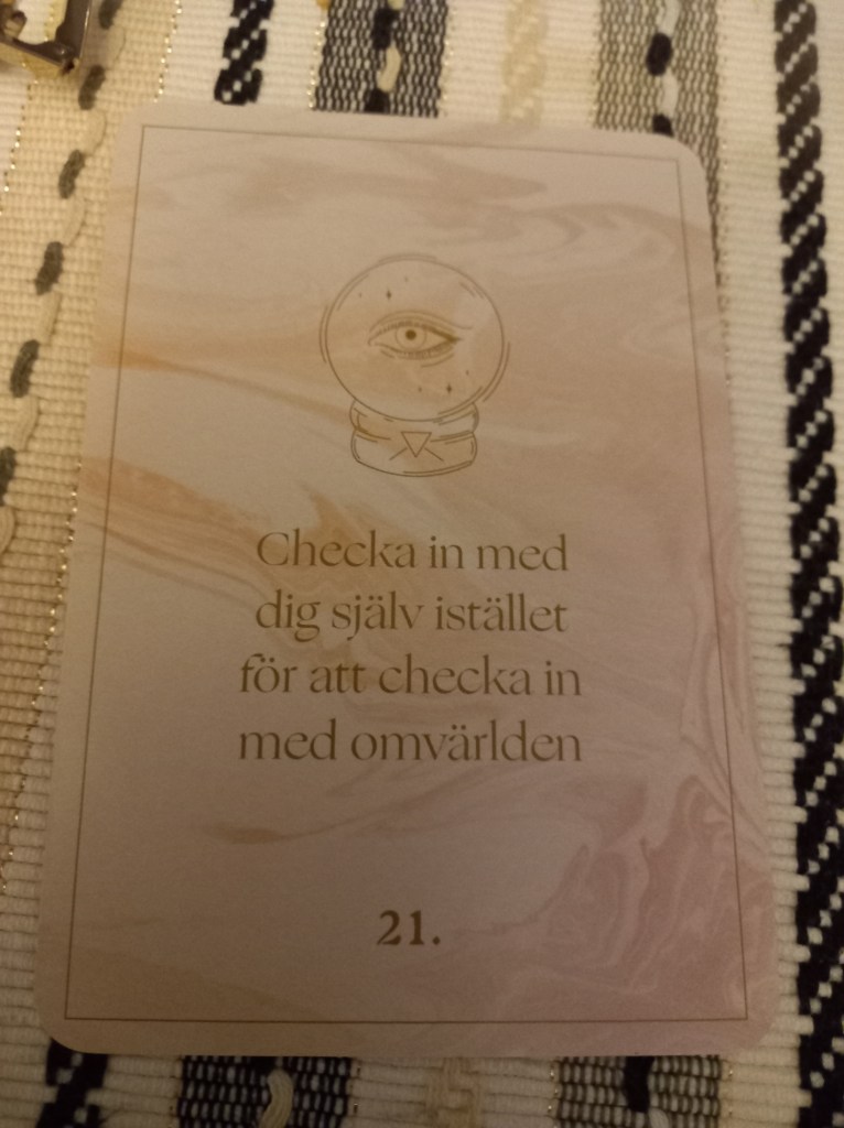 Nu var det längesen jag drog några kort och igår fick jag en så stark känsla av att jag borde göra det. Frågeställningen var. Vad ska jag tänka på nästa månad.