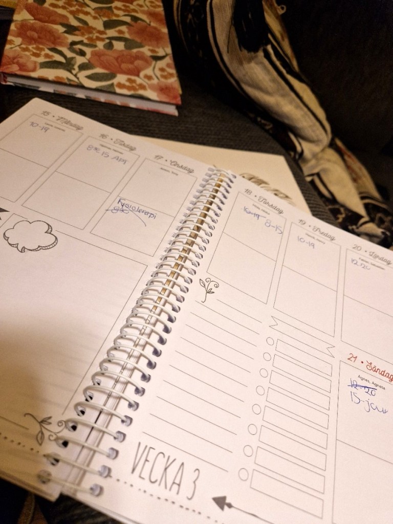 Ibland låter det som om jag mest gnäller, men tänker visa lite hur mina veckor faktiskt ser ut och hur lite tid jag har förutom jobbet. Satt hos arbetsterapeutens och vi gick igenom det och finns inte mycket att spela på de dagarna.