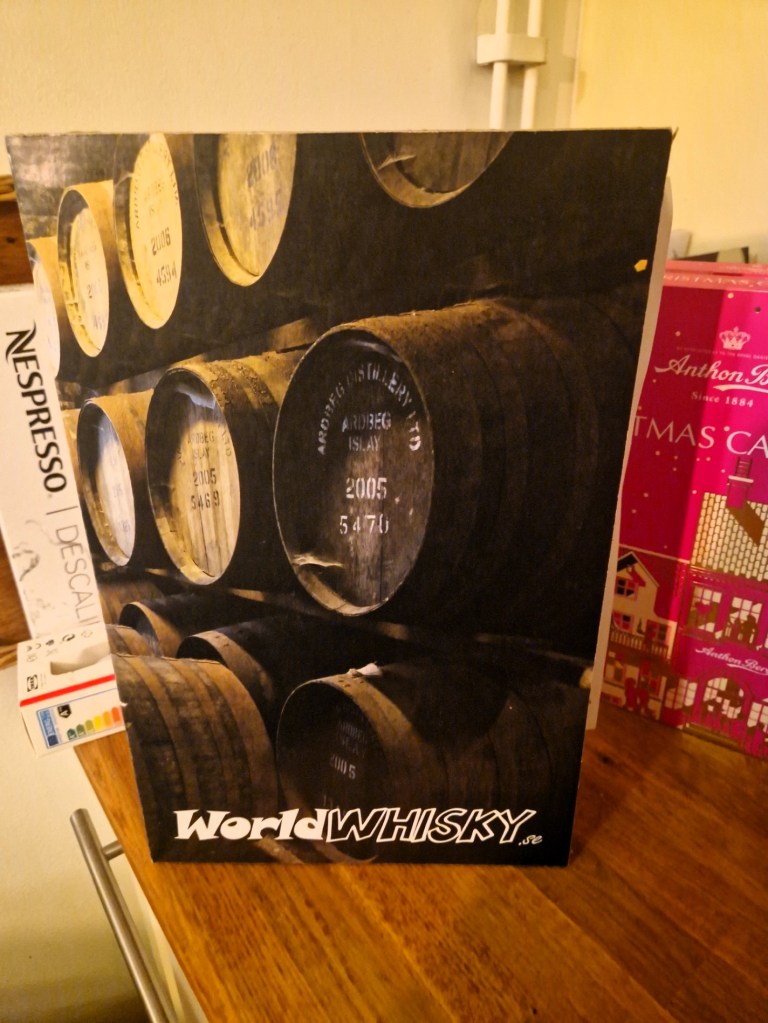 sist ut får bli makens whiskykalender. Vi har haft kalendrar härifrån under flera år. Första året chansade jag bara, men visst var jag lite nervös då jag inte visste vad jag köpte. Det blev ändå så bra så vi vi har fortsatt att köpa varje år. Ett par år valde vi deras romkalender för att variera oss, men i år ville han ha whisky igen.