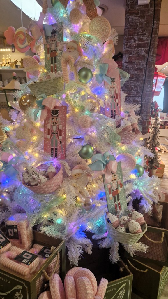 Är uppbyggs som flera små showrooms. Man får tips om hur man kan göra och allt är inte självklart. Vilken gran vill du ha? Pastellig, eller lite mer traditionell? Silvrig eller guldig?