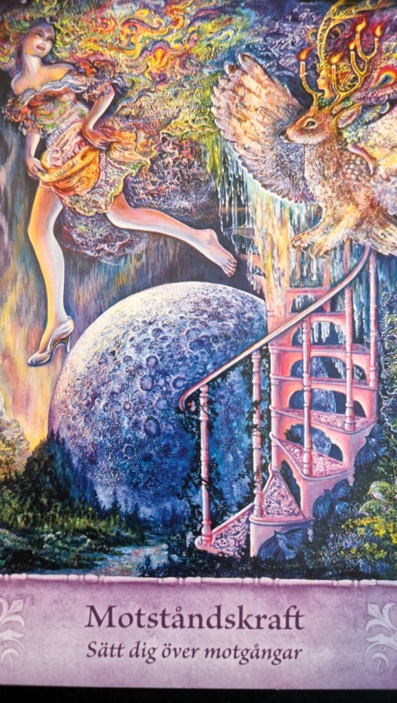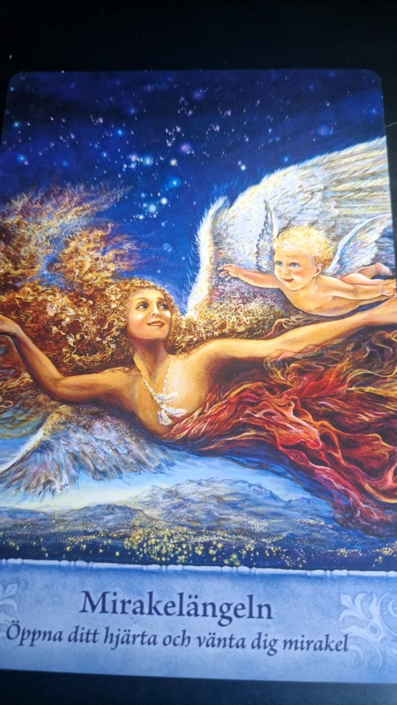 Tror ni på änglar? Jag är den som tror på det fullt ut. Mycket på självupplevda saker. Många himlar med ögonen och tycker jag är konstig. Då får dom tycka det. Blev lite ställd själv då det här kortet låg på tur. Helt klart är det just det här jag själv behövde just nu. Nog om mig. Nu ska jag beskriva vad det här kortet står för.