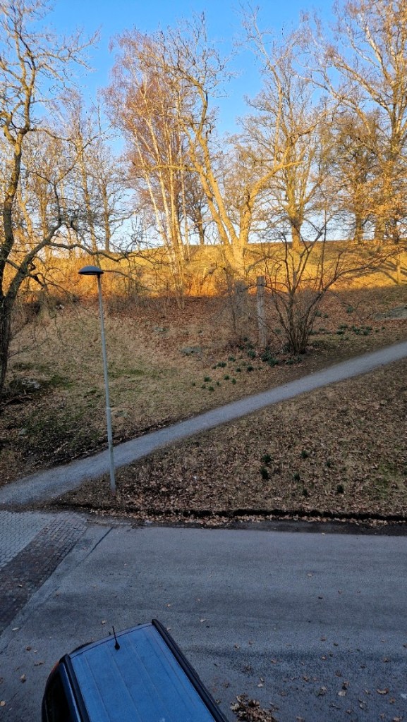 Solen sken då jag tittade ut genom fönstret. Öppnade upp, och fick in lite frisk luft. Lite kallt, men så skönt. Jag saknar det här med frisk luft. Kunna sitta ute med en filt om sig och bara få vara. Snart kommer utemöblerna plockas fram på gården och längtar verkligen dit. Ta med sitt kaffe och bara vara.