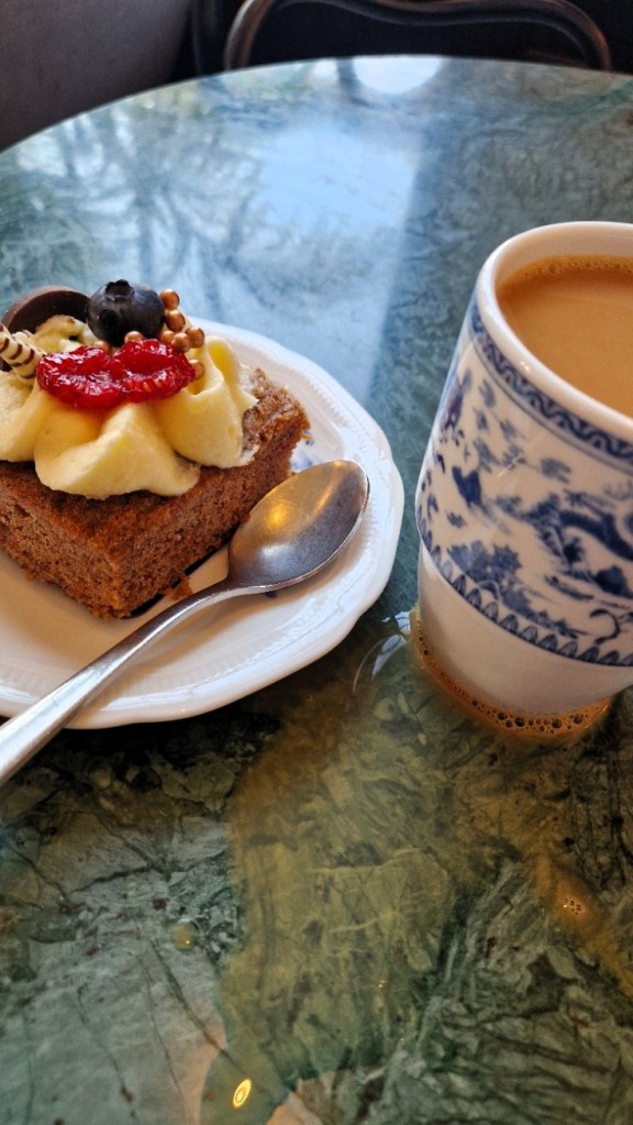 Vi kom tidigt så tog en kaffe på ett café innan det var dags för första stoppet.