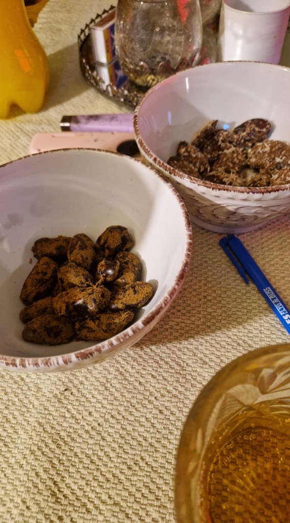 Bjöd även på smaksatta dadlar. Har ni smakat dom? Så goda. Dadlar i botten och smaksatta med olika godis. Vi valde saltlakrits och choklasboll.